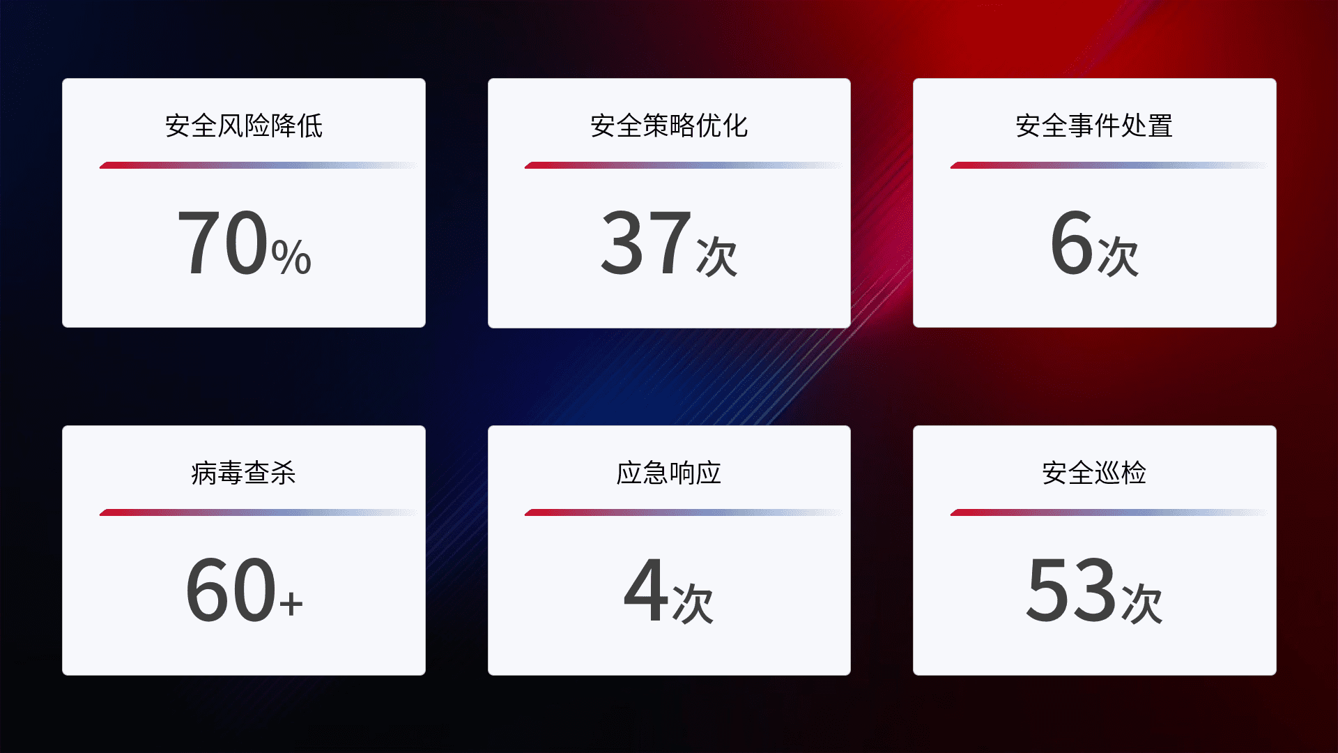 综合报告与文档服务: 定期提供安全事件处置报告、、、周/季度总结报告和年度总结报告;详尽的文档服务可帮助客户了解网络安全状况,,,支持决策制定和流程优化。。。