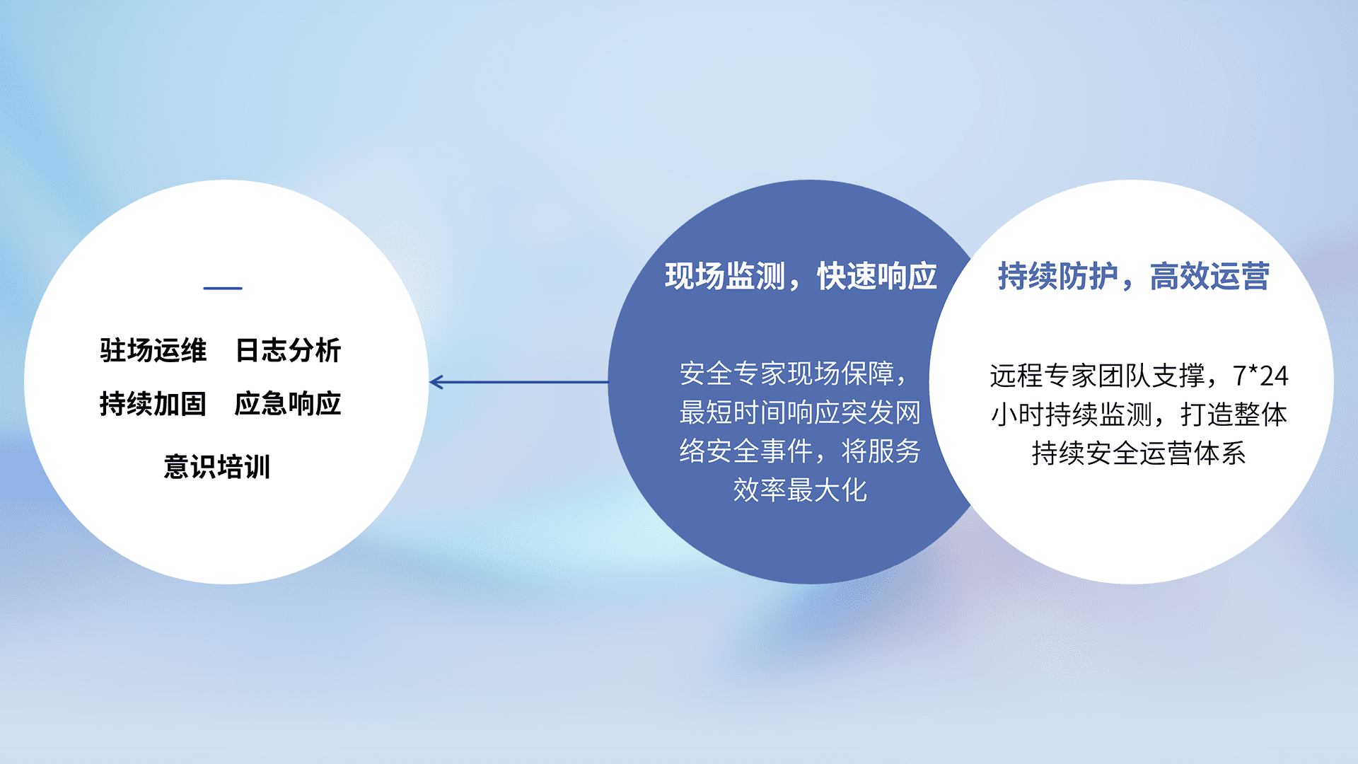 针对客户行业特性,,,,提供专属的一站式安全管理服务,,,,帮助客户全面感知网络空间威胁,,,通过安全专家的线上、、、、线下防护支持,,实现风险闭环,,将安全保障常态化,,,为客户打造常态化安全运维运营服务。。。